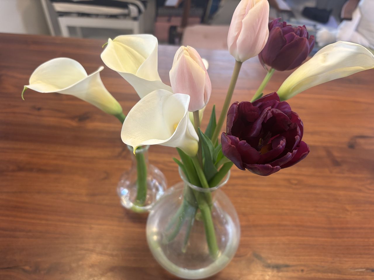 カラー5本、チューリップ4本のブーケが届きました💐チューリップの色も絶妙でした!