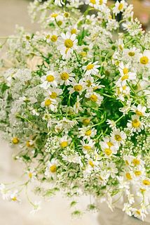 ふわふわゆれるマトリカリア「シングルペグモ」と「ホワイトレースフラワー」をたっぷり10本ずつ束ねました💐