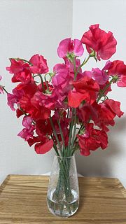 初めて赤いスイトピーを飾りました。 スイトピー特有のフワフワ可愛らしい雰囲気に華やかさが加わった印象を受けました。