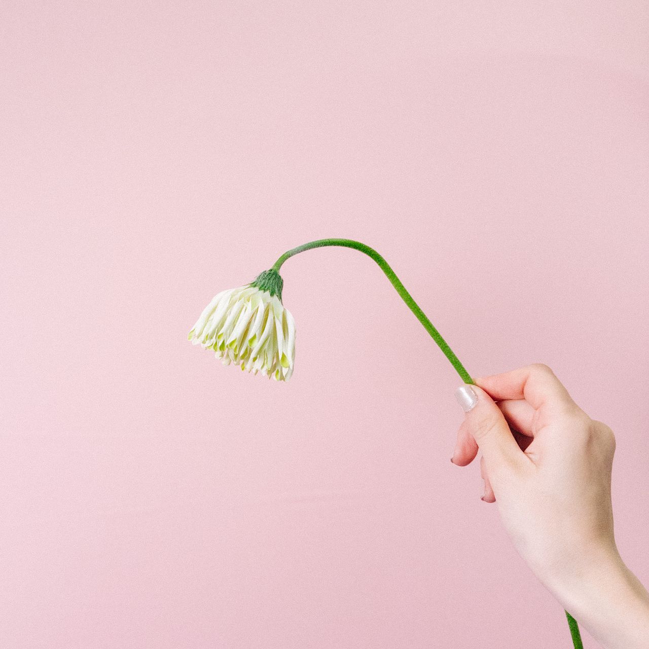 ガーベラの特性として首が曲がりやすくなっています。ご了承ください。(写真は別の品種です)
