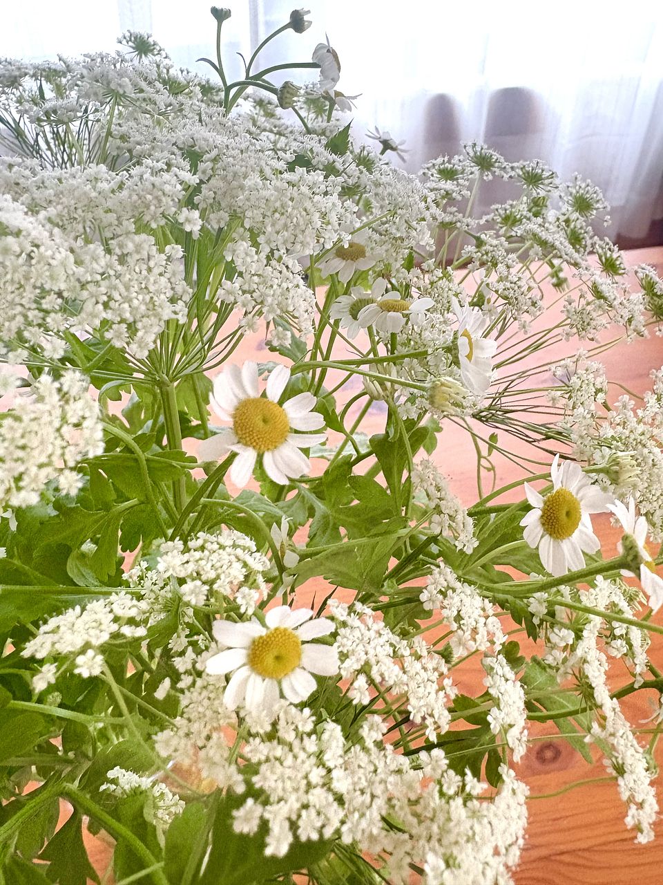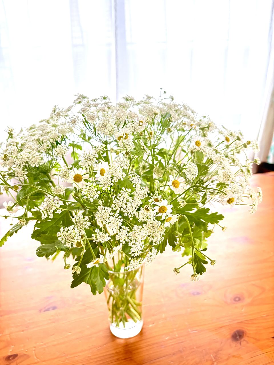 ふわふわゆれるマトリカリア「シングルペグモ」と「ホワイトレースフラワー」をたっぷり10本ずつ束ねました💐