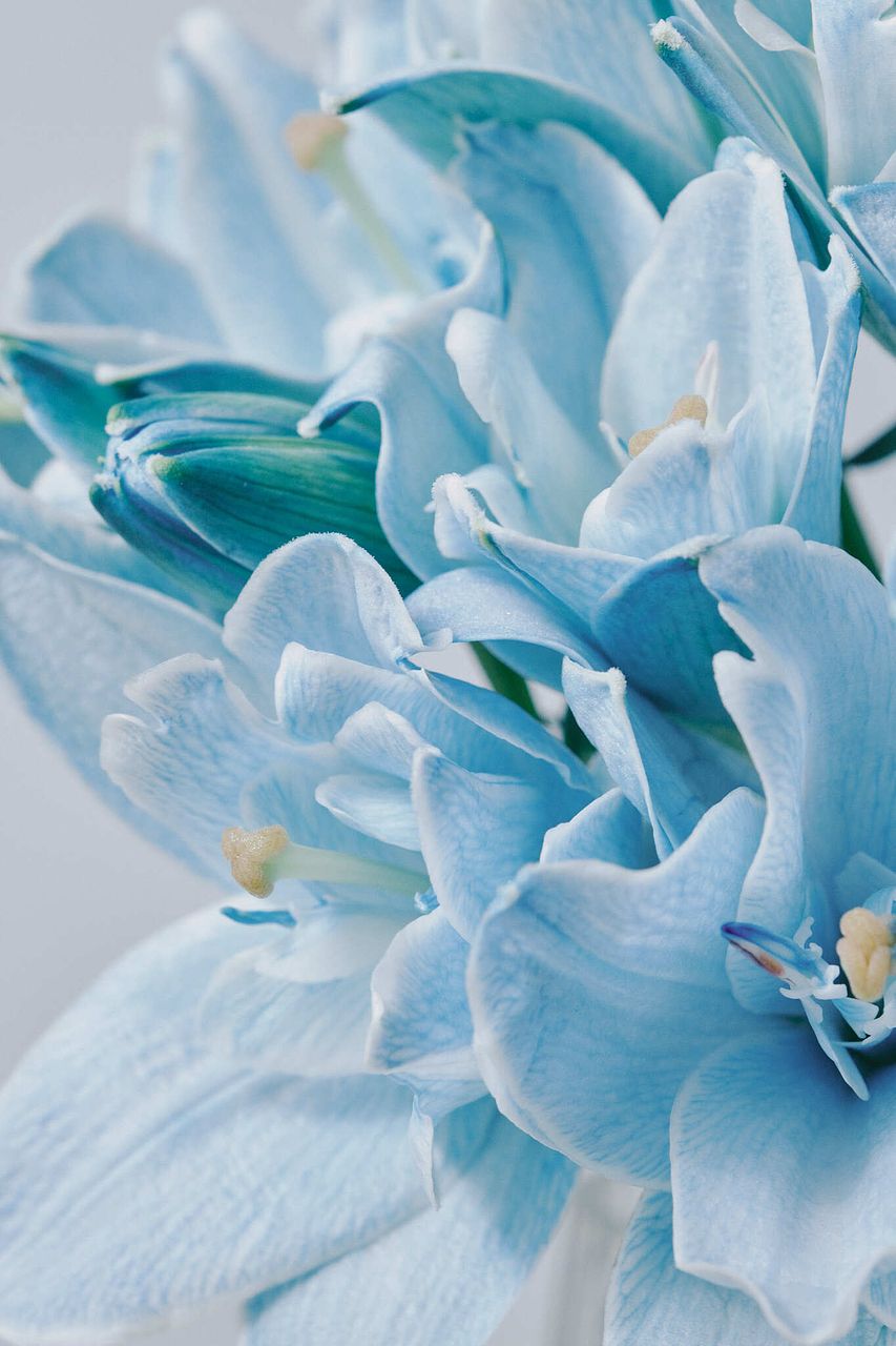 まず茎先をカットし、茎の7〜8割が浸かるイメージで深いお水に数時間つけてあげて。水圧で花に水が届きます。水揚げが完了したら、毎日のお世話は浅水〜中くらいの水量で。水換えはこまめにしてあげましょう。切花の栄養剤を使うと、バクテリアの増加を減らせるのでおすすめです。
