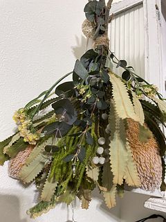 様々な形のネイティブフラワーやスターチスと合わせて、贅沢なスワッグブーケに🦁