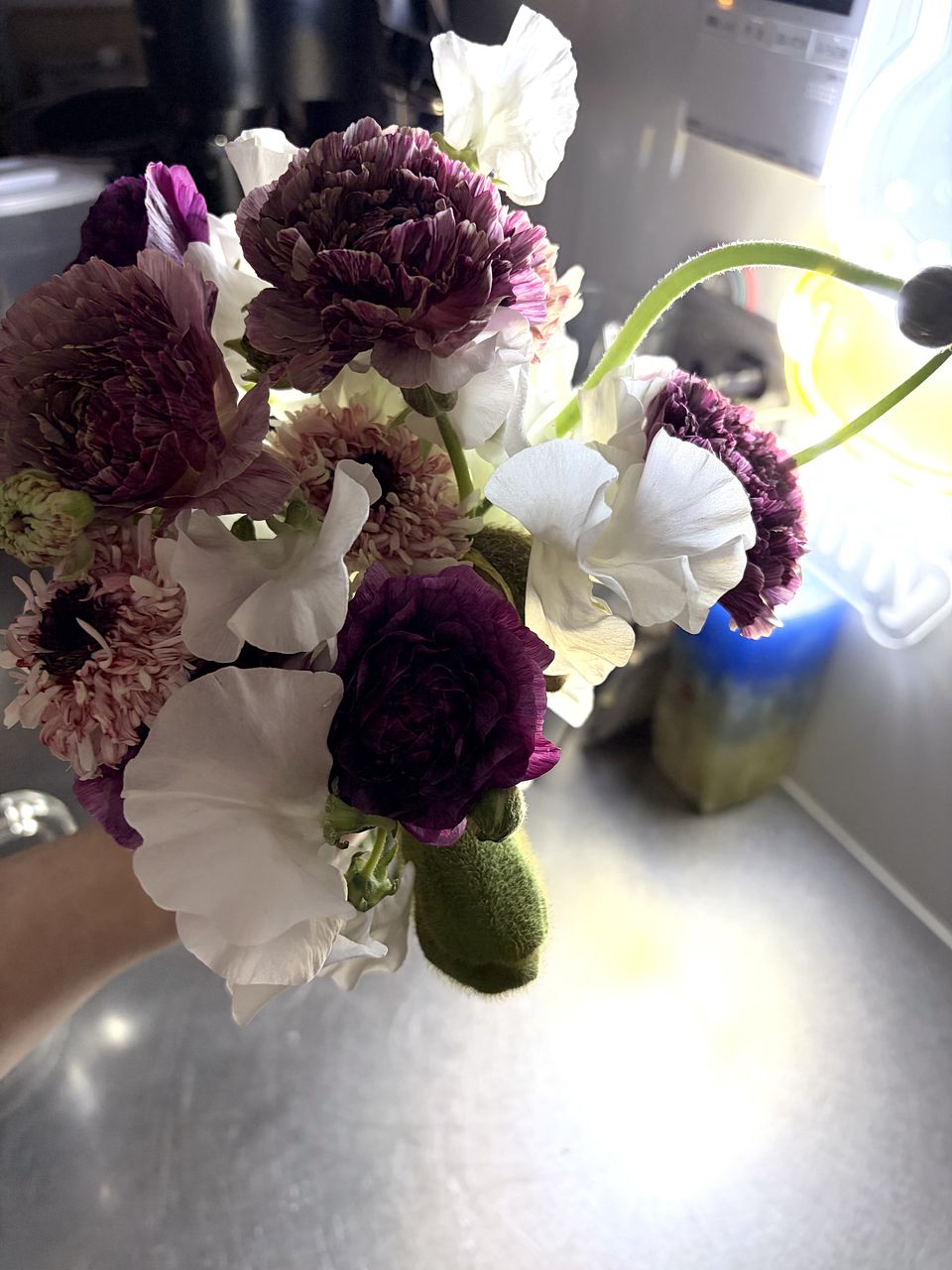 何日か前に購入させていただいたスイートピー(ホワイト)とポピーとミックスしてみました! 良きです😍😍😍
