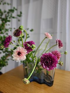 落ち着いた色味のお花たちで、玄関の雰囲気が上品になりました! 茎がすぐに折れてしまうのが残念でした…。 つぼみがたくさんあるので、長く楽しめるといいなあ!