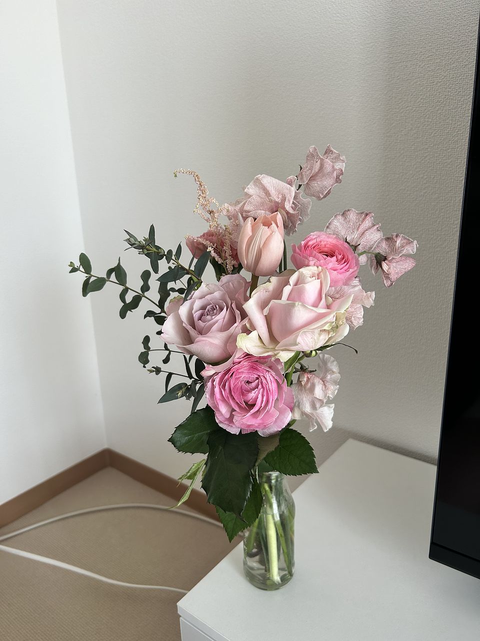やわらかなピンクを中心に、今いちばん可愛い旬の花をぎゅっと束ねたおまかせブーケ🩰💗