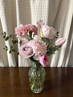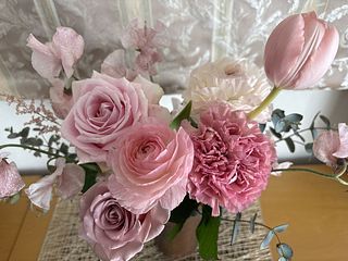 届いた箱を開けた瞬間からバラとスイトピーの香りが広がりました。柔らかい色合いでとっても優しい感じのセットでした。 金曜日に届いたので、今日で3日目となります。 蕾だったチューリップもふっくらと、 薔薇や他の花もふっくらボリュームを増し、 毎日気持ち豊かになります。 いつも素敵なブーケを届けてくださりありがとうございます。またリピートします!