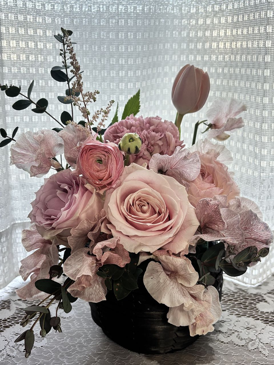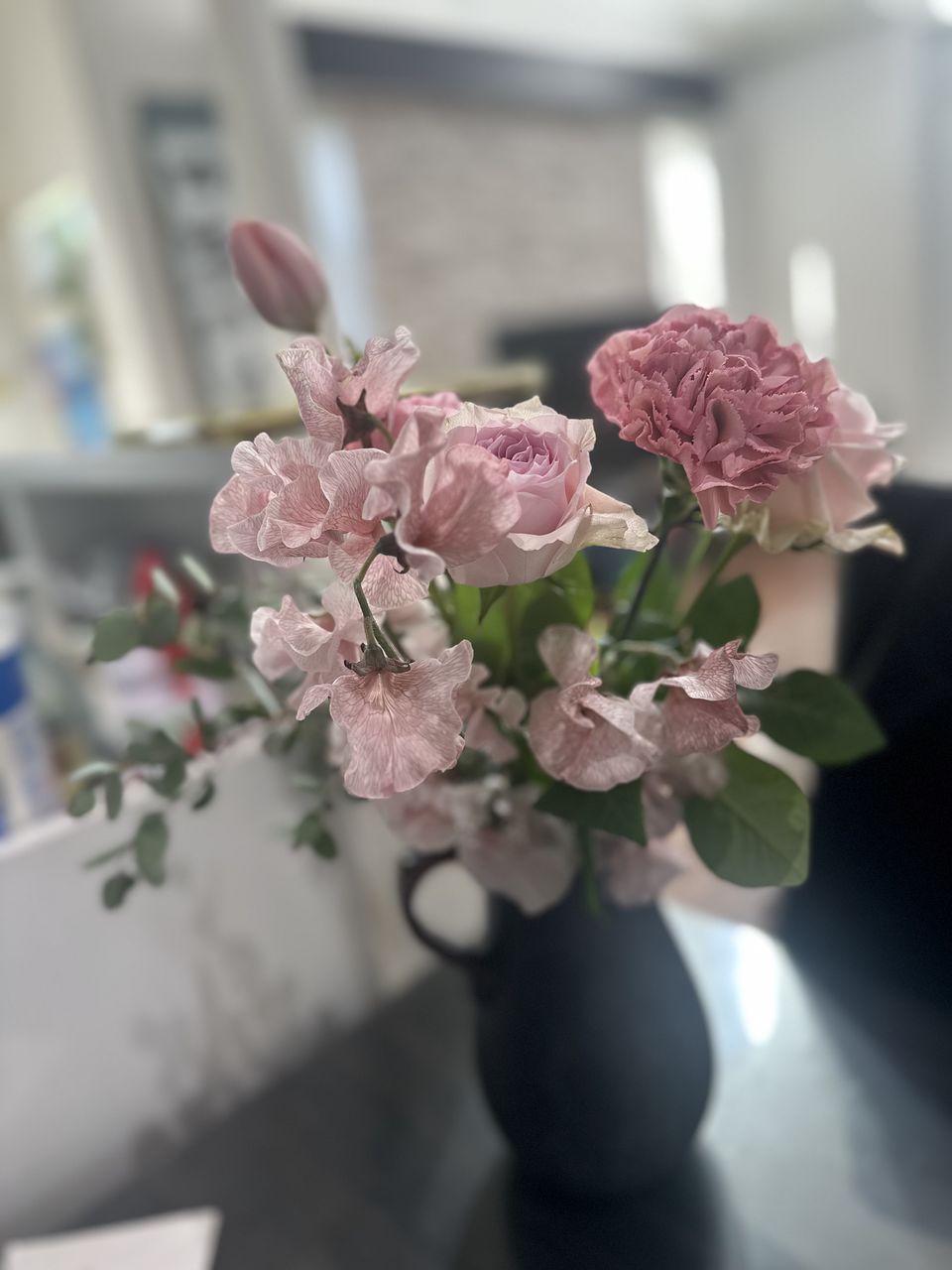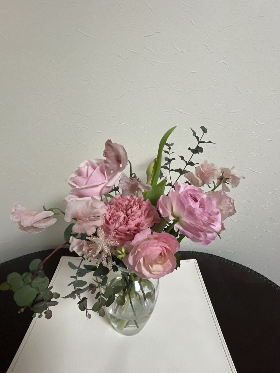 とても可愛いピンク色の沢山の品種のお花が入っていて、嬉しくなりました! また見た目だけでなく、スイートピーやバラの香りが良くて癒されています。 素敵なブーケを届けていただきありがとうございました。