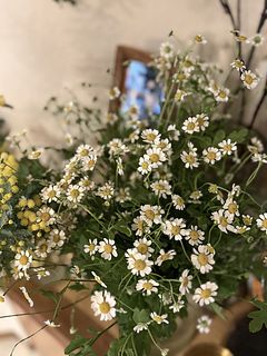 ボリュームたっぷりのミモザとマトリカリアが届きました。ミモザは枝部分が短いので花を取ることになり残念です。リースを作る用には適しているかもです。花もパラパラおちてもったいないかな。マトリカリアは北海道なので寒いのかちょっと元気ない感じですが春を感じられてお花から元気をもらいます!次回はどんなお花にしようかなぁ