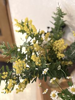 ふわふわのミモザがたっぷり入っており、とても幸せな気持ちになりました。マトリカリアとの色合いが春をとても感じられて、しばらくうっとりと過ごせそうです。