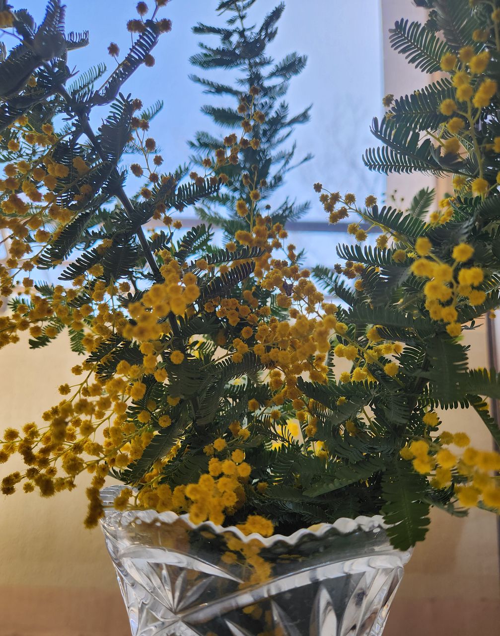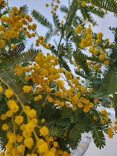 ミモザの水あげが難しい。霧吹きなどもしましたが花は当日から萎み始めてしまいました。