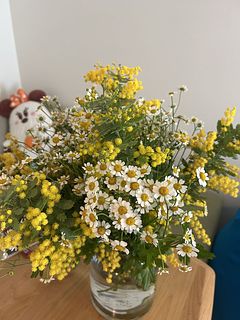 マトリカリアはボリュームもあり、可愛かったです♡ ミモザはモフモフで可愛かったのですが、長さがバラバラで生けづらかったです🥲