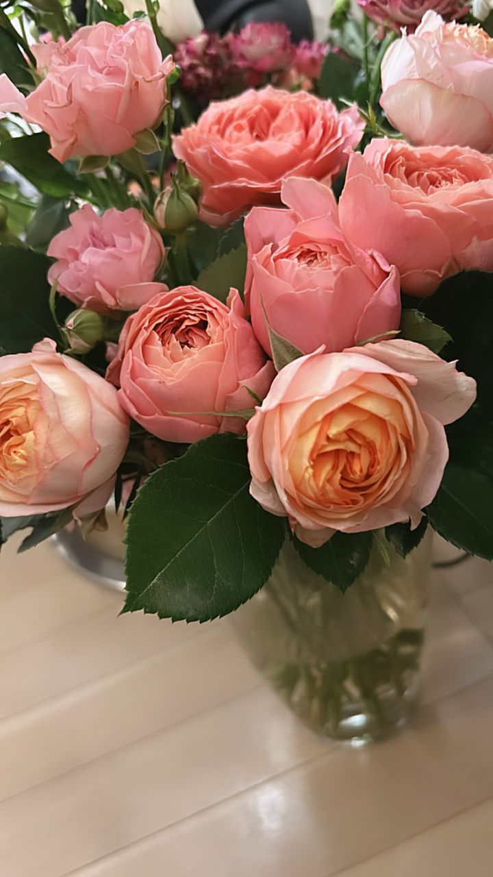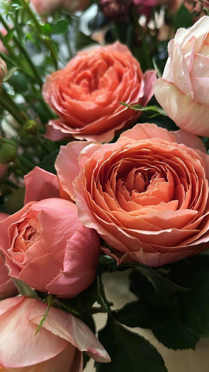 バラ「ベビーロマンチカ」とコーラルピンクの「ロマンティックアンティーク」だけを束ねて🫶