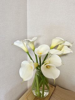 写真通りの綺麗なカラーが届きました。数日でカラーの花がふんわり開いてくると、よりボリュームがでてほんのり甘い香りがしました。 すっとのびた茎と真っ白の花が、お部屋を爽やかな空間にしてくれるのでとても気に入りました。 素敵なお花を届けていただいてありがとうございます。