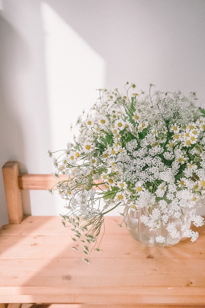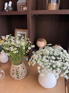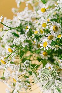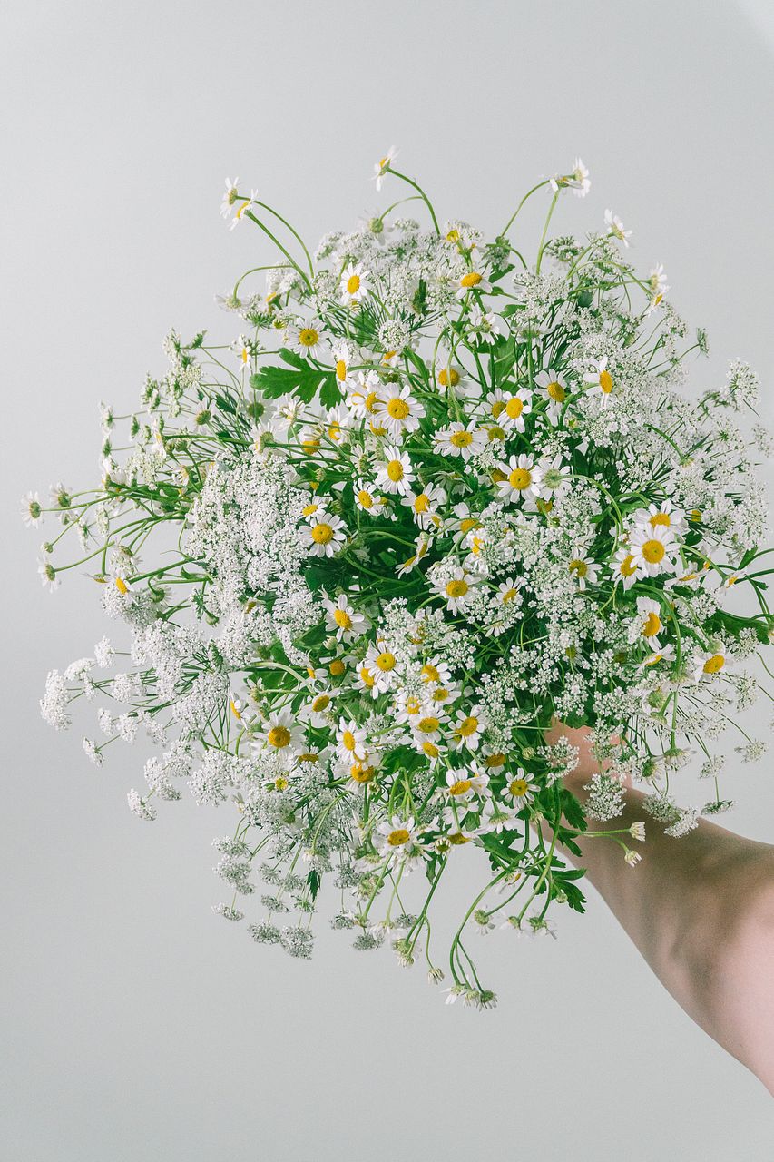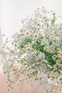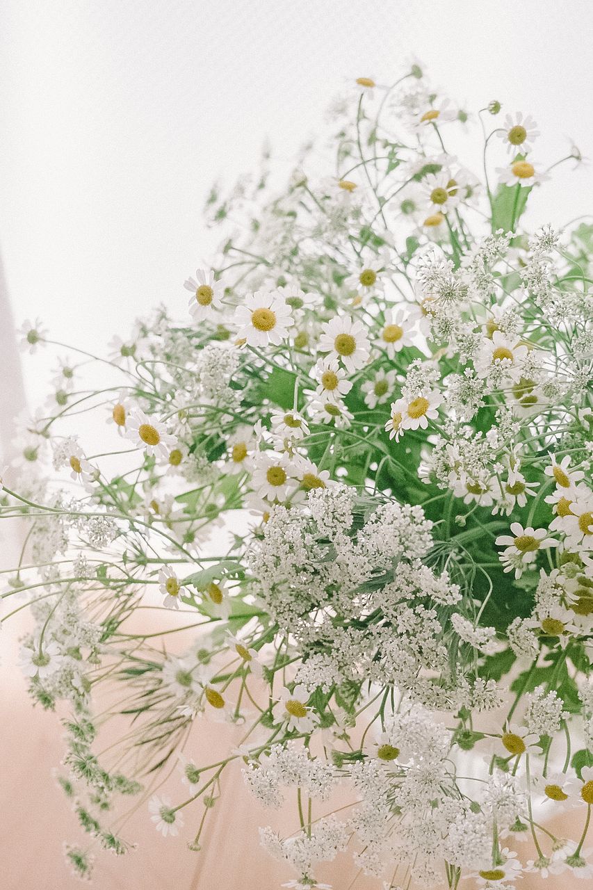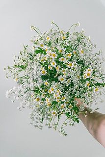 ふわふわゆれるマトリカリア「シングルペグモ」と「ホワイトレースフラワー」をたっぷり10本ずつ束ねました💐