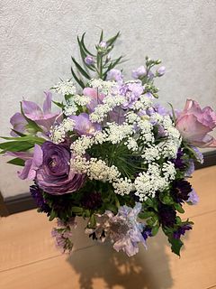 自分の誕生日用に購入しました。沢山の種類のお花で花束になっていて、香りも良くてとても満足しています。生活が明るく潤う感じがしています。