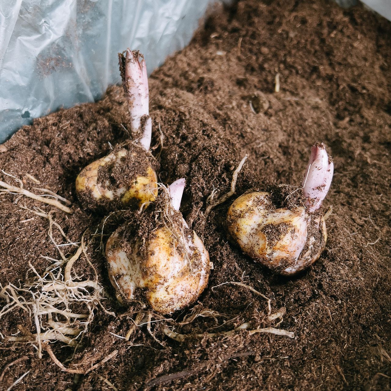 オランダやニュージーランドから届いた球根。ここから美しい百合に育てます。