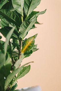 葉っぱの一部が黄色くなっていることも。優しく取り除いてあげてください ※鉢の色は現物と異なります