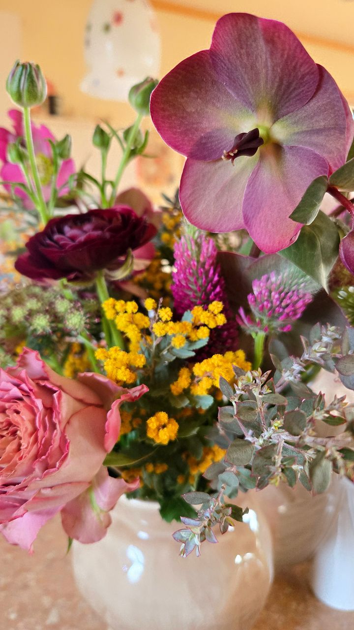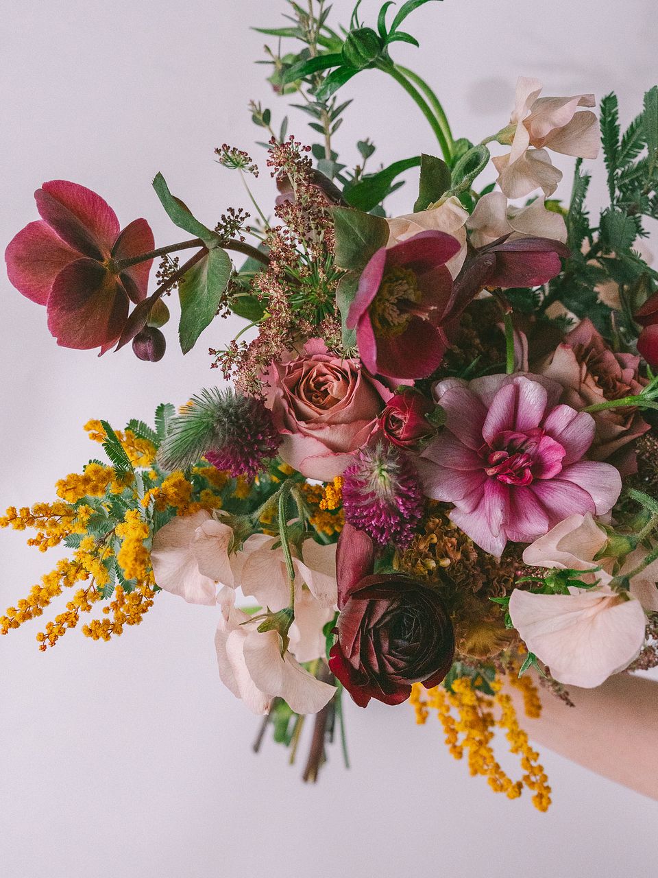 今回はやわらかな紫が美しい、季節のクリスマスローズをメインに束ねました。