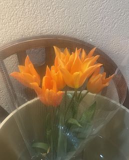 チューリップは茎が伸びるのが特徴ですが、花が開き茎が伸びていくとまるでバレリーナが踊っているような見た目に変化します🩰その過程も楽しんで🧡