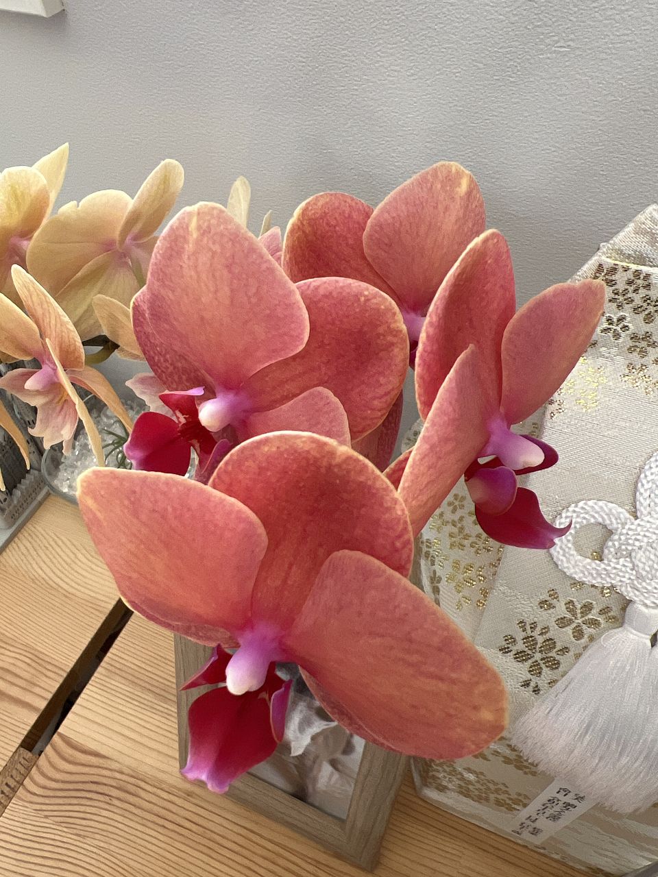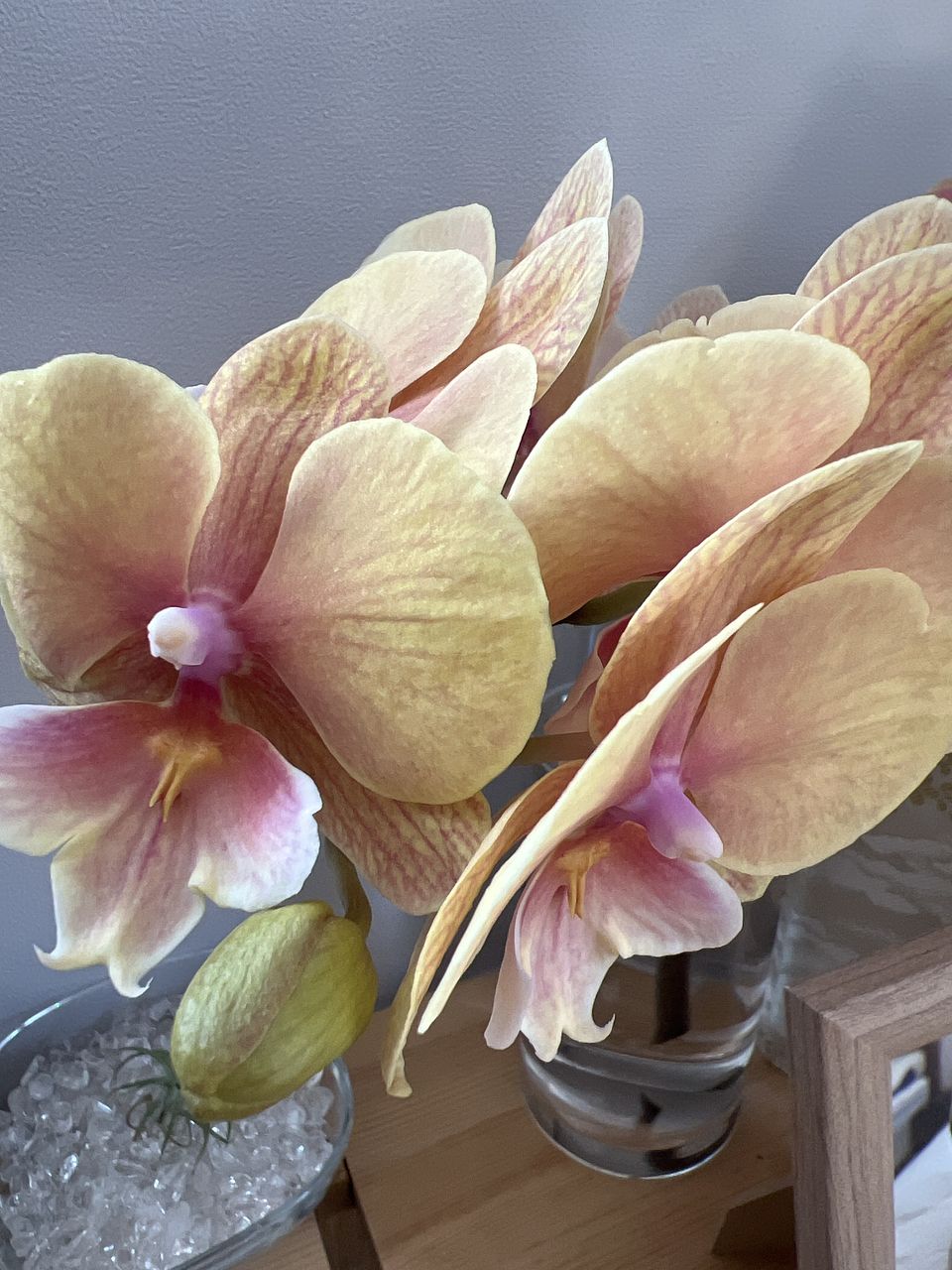 ミディファレノプシス「ハニーサンキスト」と「サーフソング」の2本セットでお届けします。