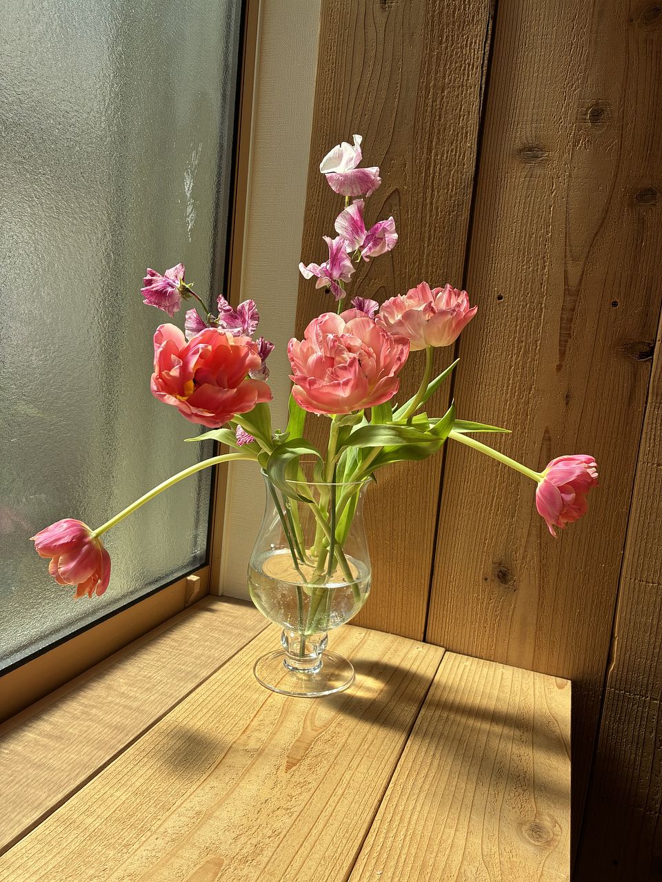 多幸感あふれるチューリップ「ラルゴピンク」と「ピンクシンビオーズ」。