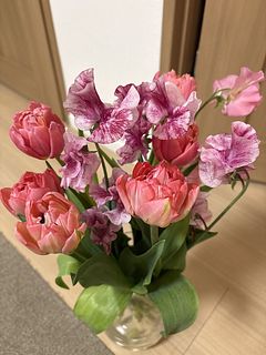 何とも言えないチューリップ🌷の色がかわいくて、上品さもありとても気に入りました。 ボリュームもあり3カ所に飾り、家の中がとても華やかです!なかなか買いに行く時間がない中、新鮮で素敵なお花が届くのは最高です! お値段以上で次回もリピートしたいです!