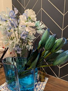 バレエスタジオに飾っております。 通われている生徒さんたちが、綺麗な色ですね〜、お花に癒されますね〜と、とても喜んで下さっています。 綺麗なブルーで、落ち着きます。