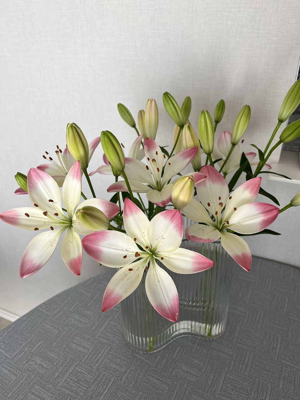 ぽっと頬を染めるように、ホワイトからピンクのグラデーションが美しいスカシユリ「シュガーラブ」💖