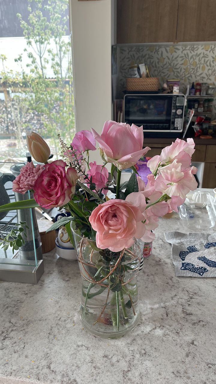 色も春ピンク、ボリュームもあって、スイートピーの香りに癒されました。部屋がいきなり春になった感じで素敵でせ😀