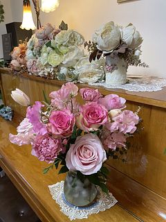 とても可愛いピンク色の沢山の品種のお花が入っていて、嬉しくなりました! また見た目だけでなく、スイートピーやバラの香りが良くて癒されています。 素敵なブーケを届けていただきありがとうございました。