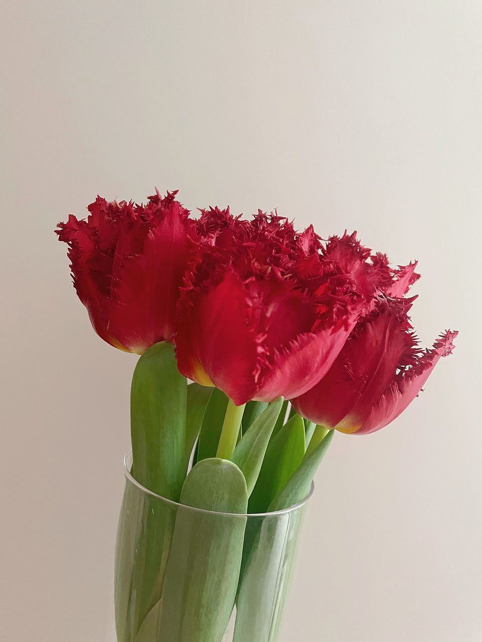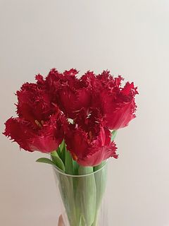 深紅の赤色とフリンジ咲きが珍しいチューリップ「ベルサーチ」❤️