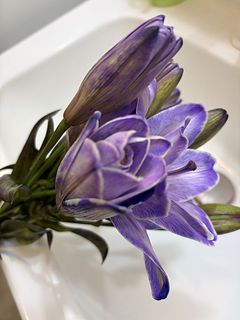 ラベンダー色が好きなので染めた百合にわくわくしてました。でも9つの花のうち3つしか咲いてくれませんでした。咲かないのはどういう状態なのかわかりません。