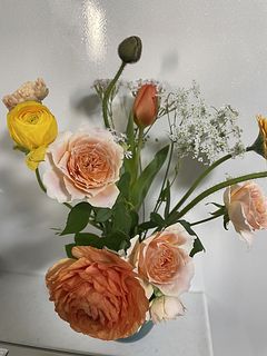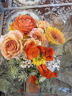 おまかせという事で、バラにガーベラ、カーネーションにポピー、レースフラワーなどボリュームがあって、明るい色合いに、元気をもらえました🥰 ありがとうございました!