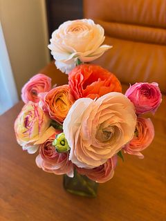 初めて知ったお花です。花弁の多い花が好きで一目惚れしました。届いて4日目ですがいくつか満開です。蕾もありますがうまく咲くか... 気に入り過ぎたのでもう1つ別のラナンキュラス注文しています。届くのが楽しみです。