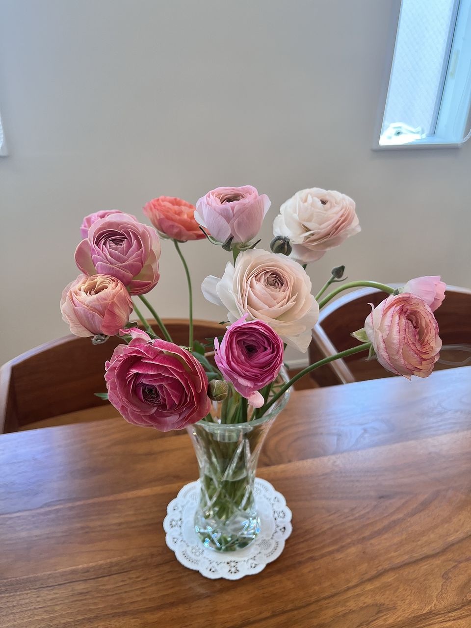 今年ラナンキュラスが気に入ってます。茎が細くても傷みにくく長持ちするところも。 春っぽさで気分も明るく💕 写真は届いて2日目です。