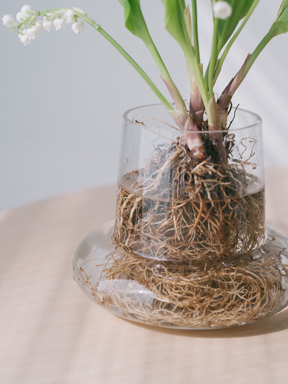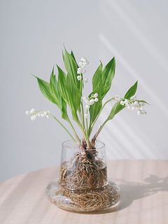 ガラスの器に入れて根っこを見せてあげると素敵です。グラスや花器、お好きなアイテムを使ってみて!
