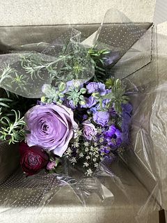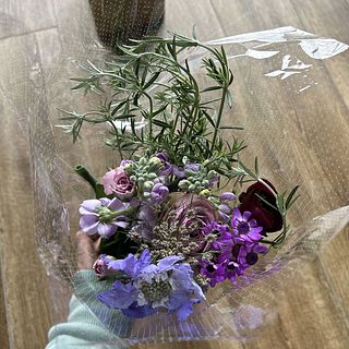 自分の誕生日用に購入しました。沢山の種類のお花で花束になっていて、香りも良くてとても満足しています。生活が明るく潤う感じがしています。
