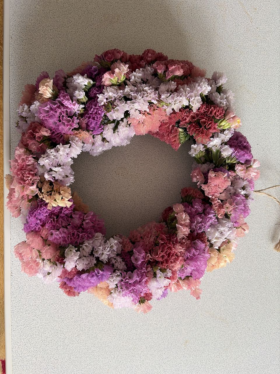 もこもこピンクやオレンジ色がかわいい🍊スターチスのリースキットが入荷しました。お花とリースの土台、ワイヤーのセットです。