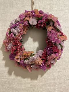 スターチスは2度目の購入になります。 今回の色の組み合わせも良かったです。 なかなかリースは上手く作れませんが、それぞれ愛おしく、見る度に癒されています。 逆に完璧じゃないのがいいのかな😅