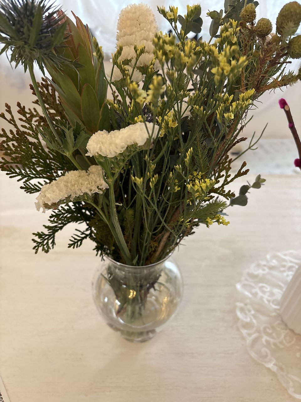 思ったよりボリュームがなかった。ユーカリがもう少しあれば。花の先が折れてたのがあり残念!