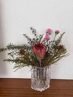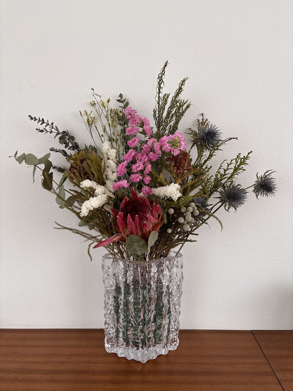 存在感たっぷりのプロテアを主役に、ローズマリーやユーカリをを束ねてみました🍓