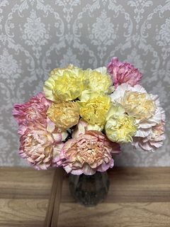 ピンクとイエローのとても可愛らしいカーネーションです。日持ちがまだわからないのでまあまあにさせていただきました。長持ちすると嬉しいです