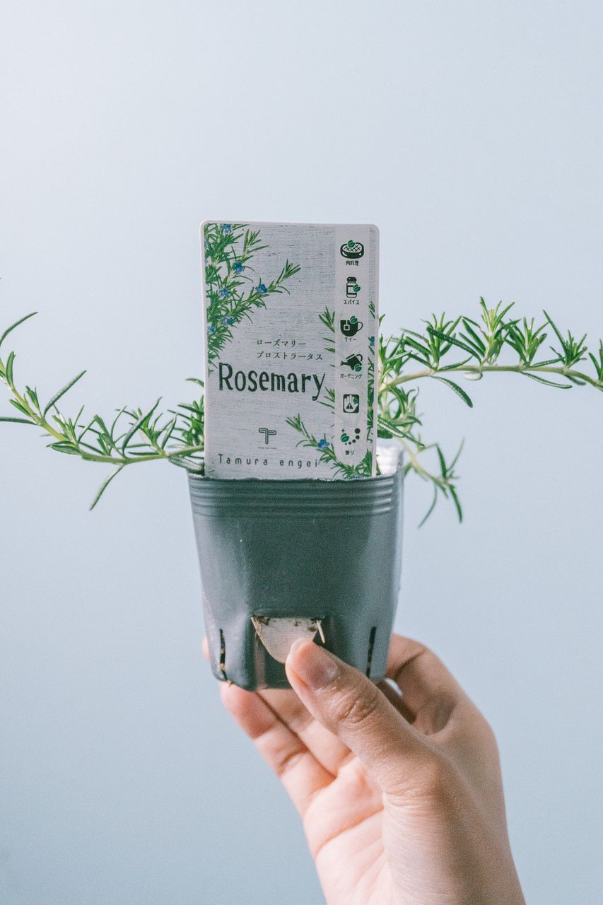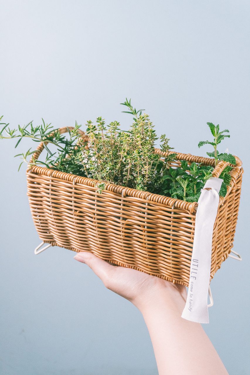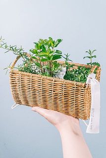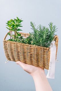 ハーブの定番、ローズマリーやミントなど3鉢をバスケットに入れてお届けします🧺