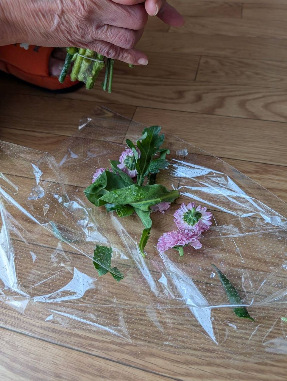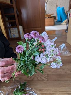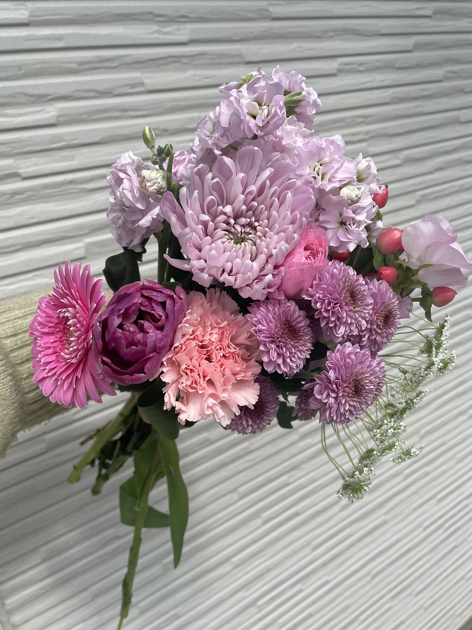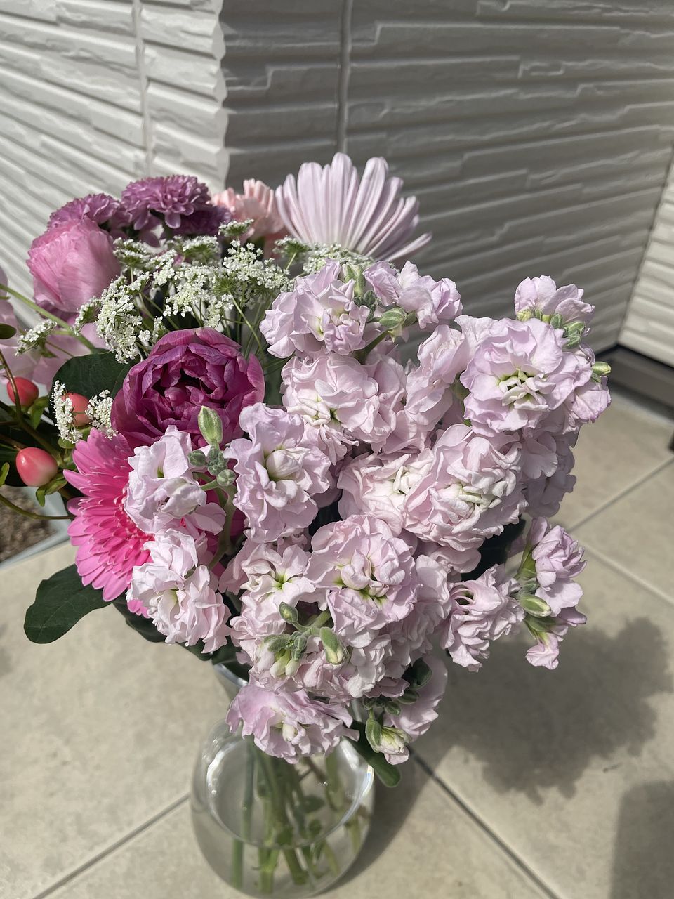 可愛いお彼岸用のブーケでした。 ストック一本でこのボリューム、びっくりしました。