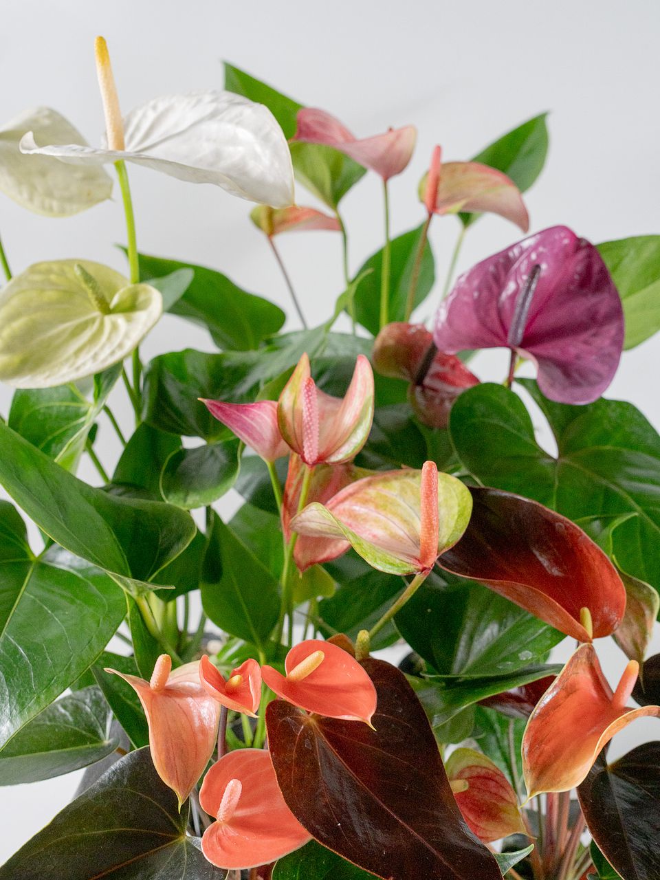 アンスリウムは咲いてからの花もちが抜群!色が淡くなってもすぐに新しい花が咲いてくるので、ずっと可愛さが続きます。