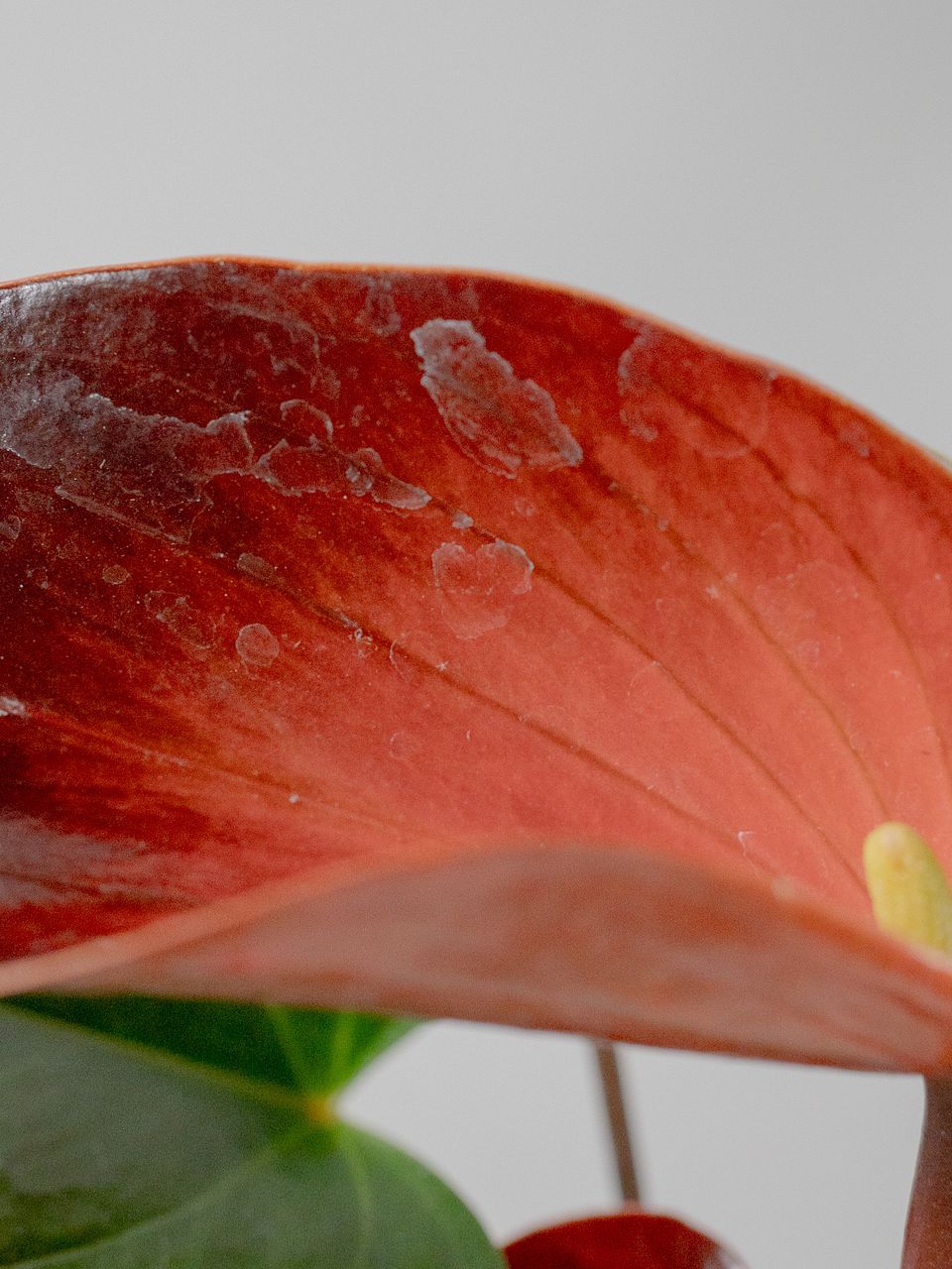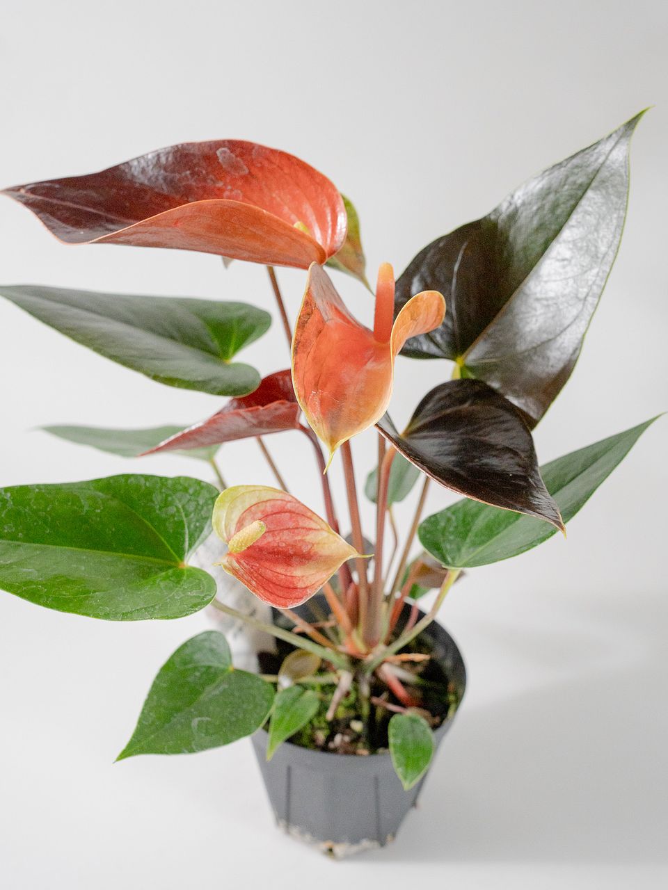 ハート形の葉と、ツヤツヤな質感の花が特徴のアンスリウム。