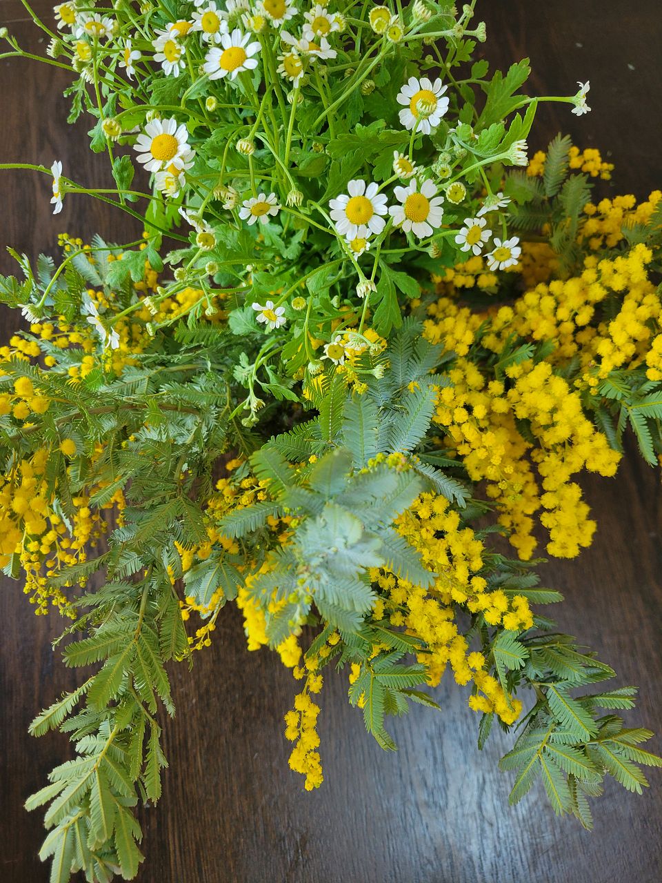 マトリカリアの花が開いてないものが多かった。ミモザはモフモフでとても良かったです。