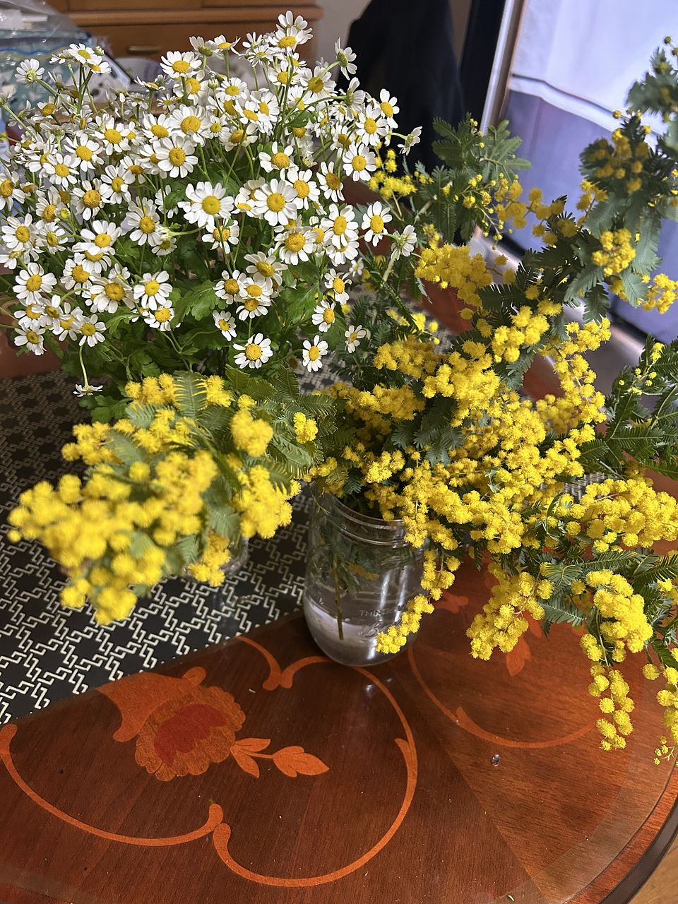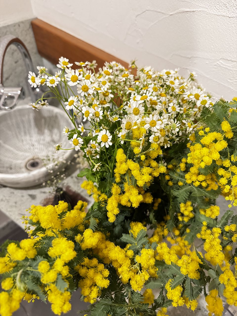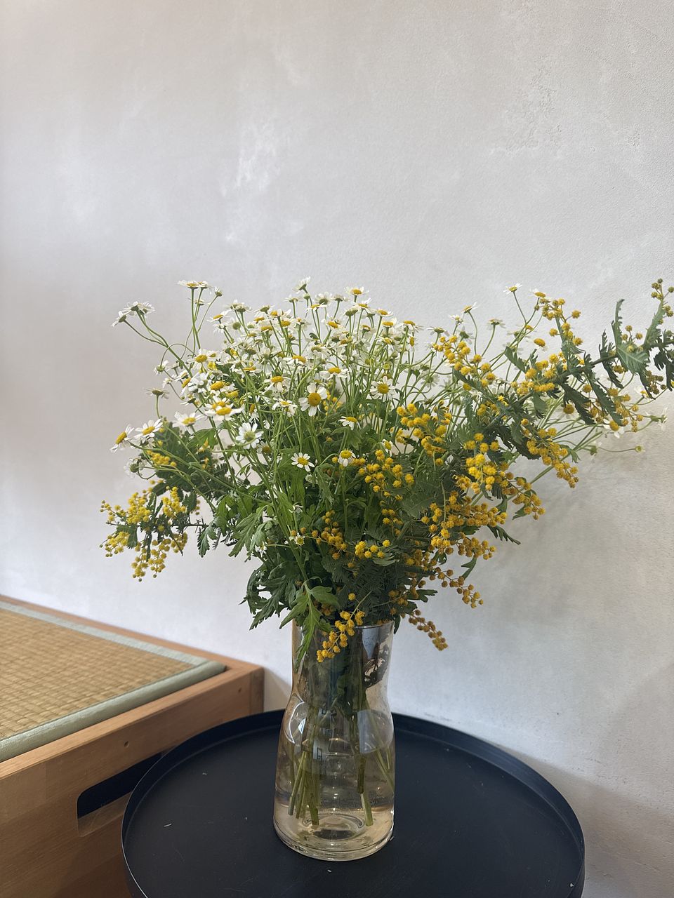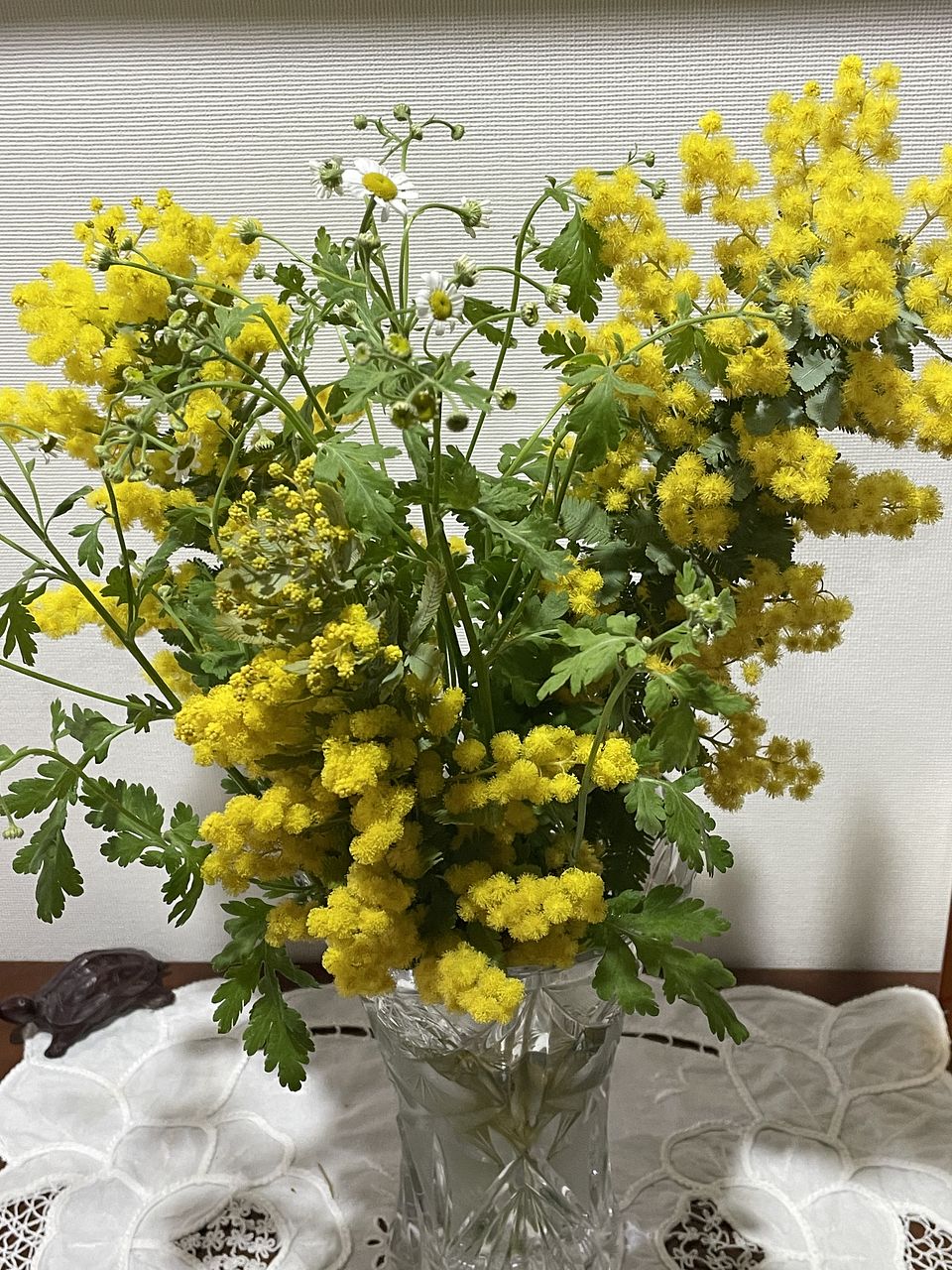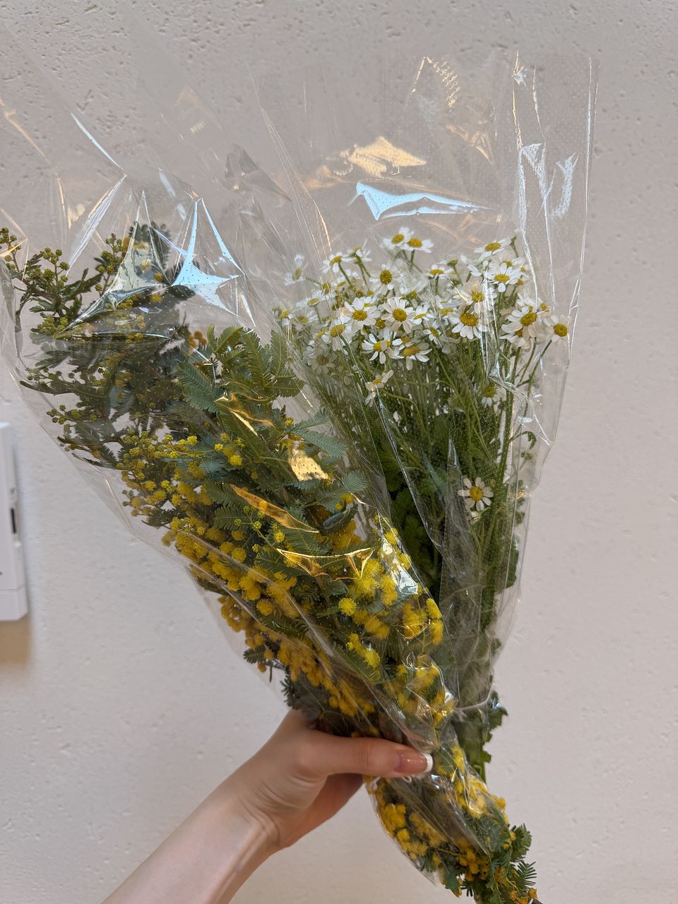 マトリカリアはボリュームもあり、可愛かったです♡ ミモザはモフモフで可愛かったのですが、長さがバラバラで生けづらかったです🥲