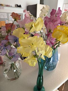 色とりどりのスイートピーが届きます。色味はランダムです。